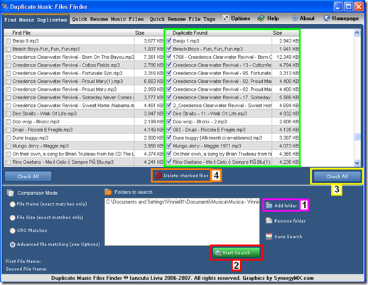 Se volete eliminare tutte le canzoni doppie che avete nel computer Duplicate Music Files Finder è il programma per voi. Dopo averlo installato vi basteranno quattro semplici mosse: